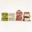 какао масло, стручкова ваніль, кокосова стружка, сухе кокосове молоко, стевія, інулін, еритритол, сублімована малина, матча, сирий какао порошок, лаванда, чай анчан